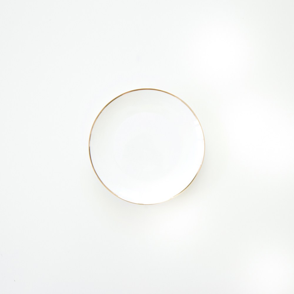 - (2) Salad Plates: (8”) White bone china with gold rim